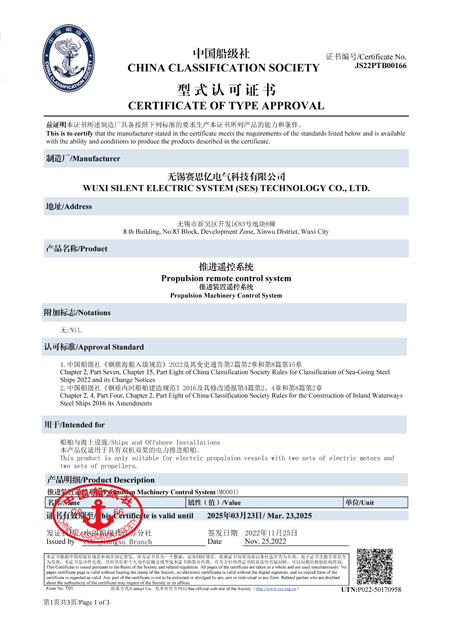 推進遙控系統(tǒng)-CCS-型式認(rèn)可證書