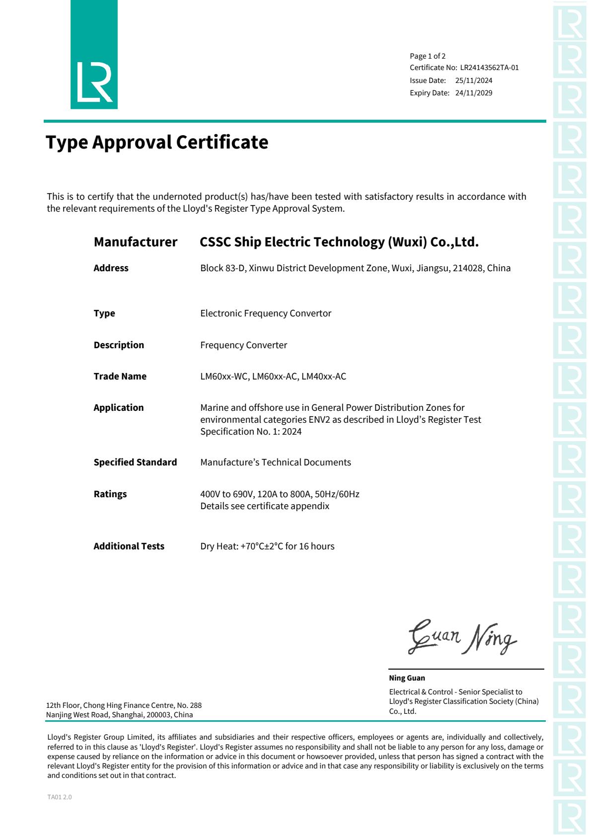 低壓船用全控功率模塊型式認(rèn)可(LR)