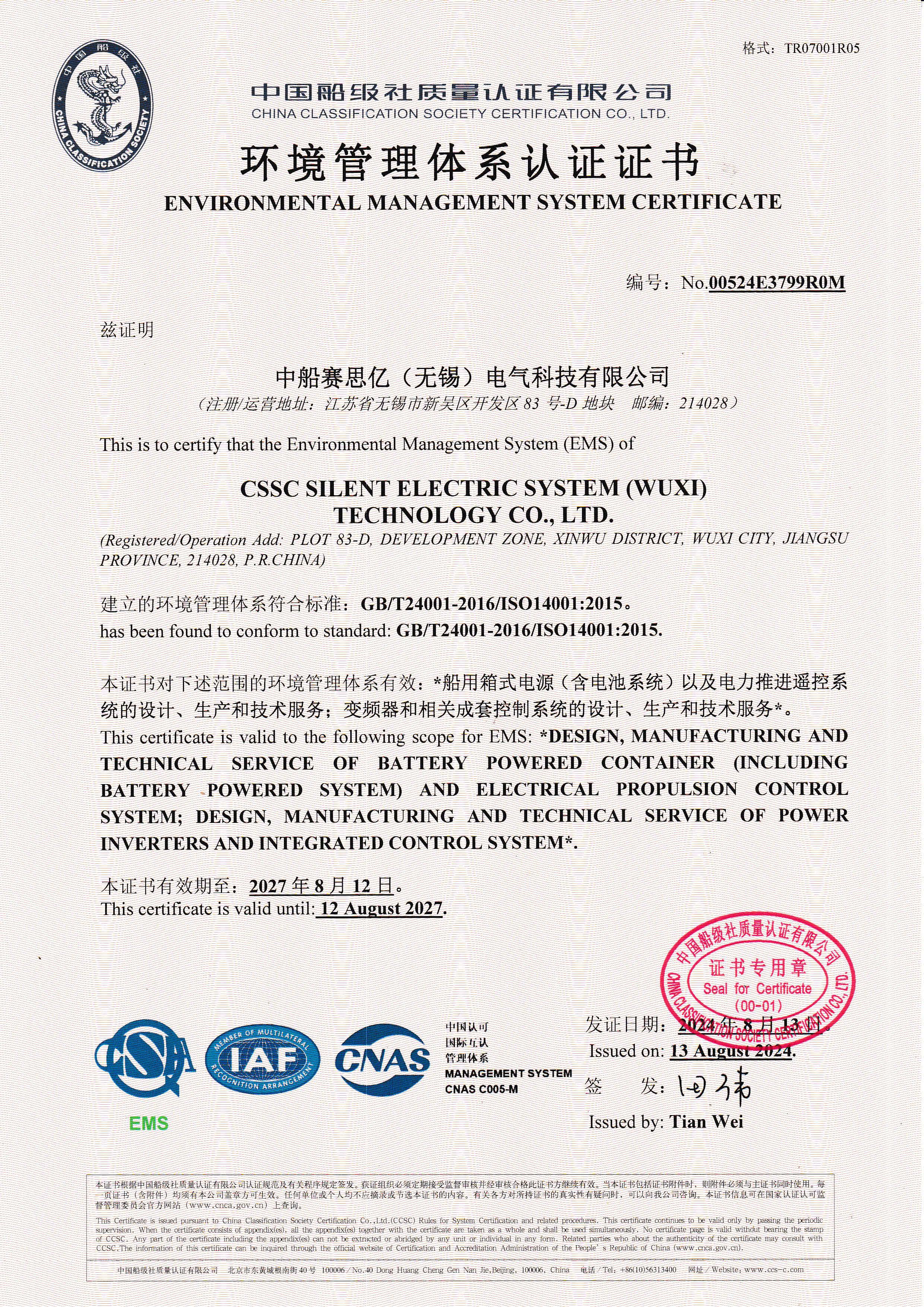 環境管理體系認證證書