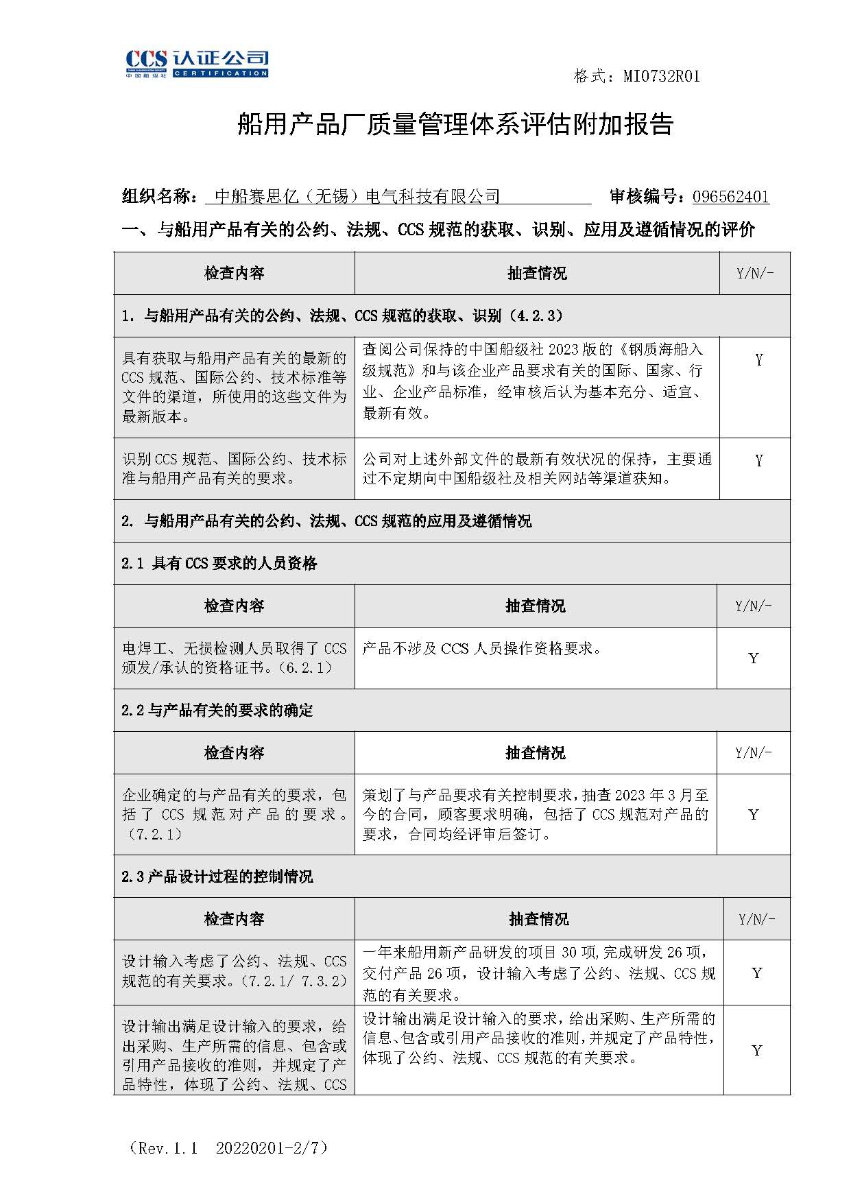 船用產品廠質量管理體系審核報告